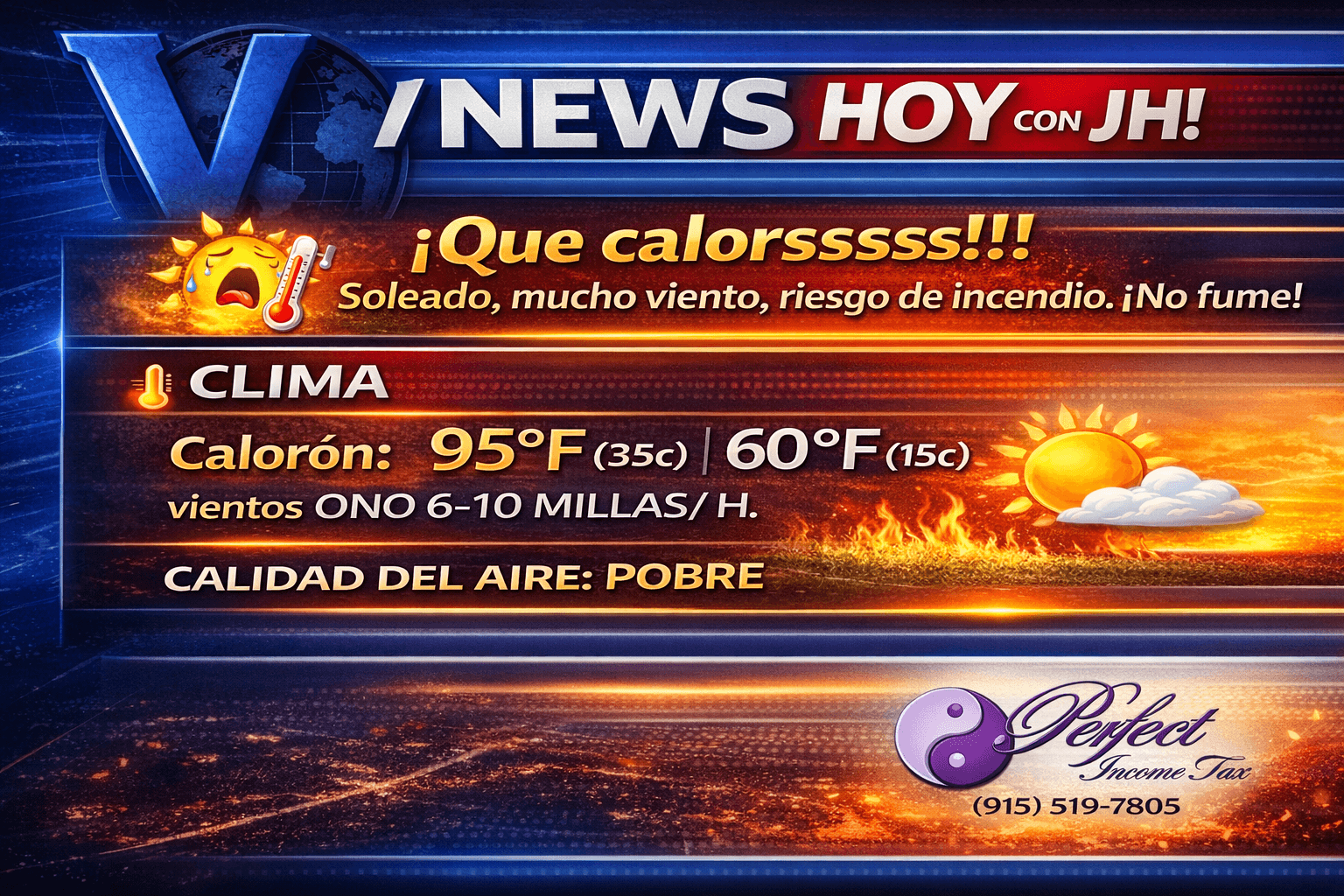 Que calorssss!!! Soleado, mucho viento, riesgo de incendio. No fume! 🌡️ CLIMA Calorón: 95°F (35c) máx / 60°F (15c) mín. vientos ONO 6-10 MILLAS/ H. CALIDAD DEL AIRE: POBRE. IGUAL IMAGEN CON LOGOS