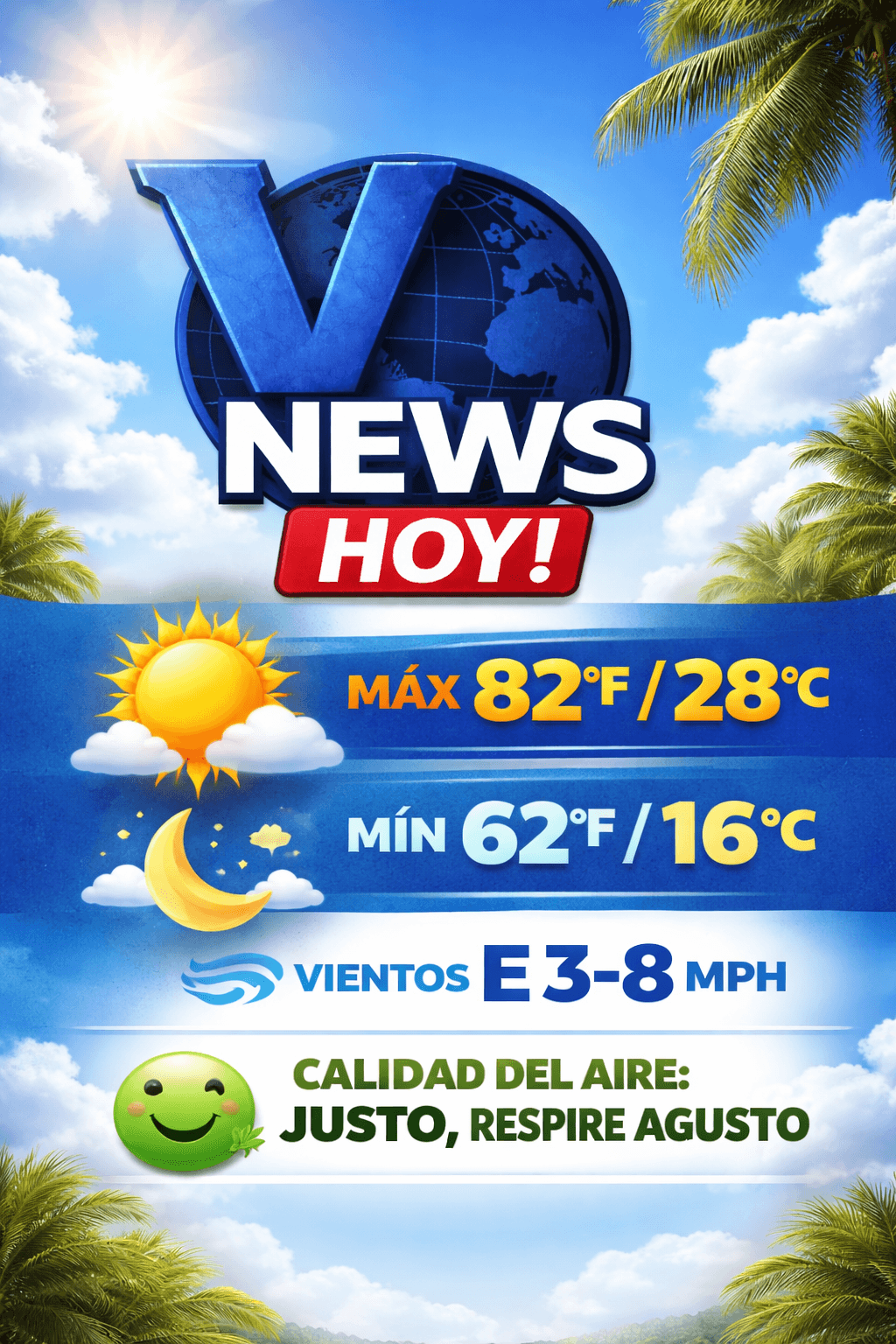 V NEWS EL CLIMAPor JH / abril 20, 2026 Comparte esto: Comparte en Facebook (Se abre en una ventana nueva) Facebook Compartir en X (Se abre en una ventana nueva) X Me gusta esto:Me gusta Cargando...